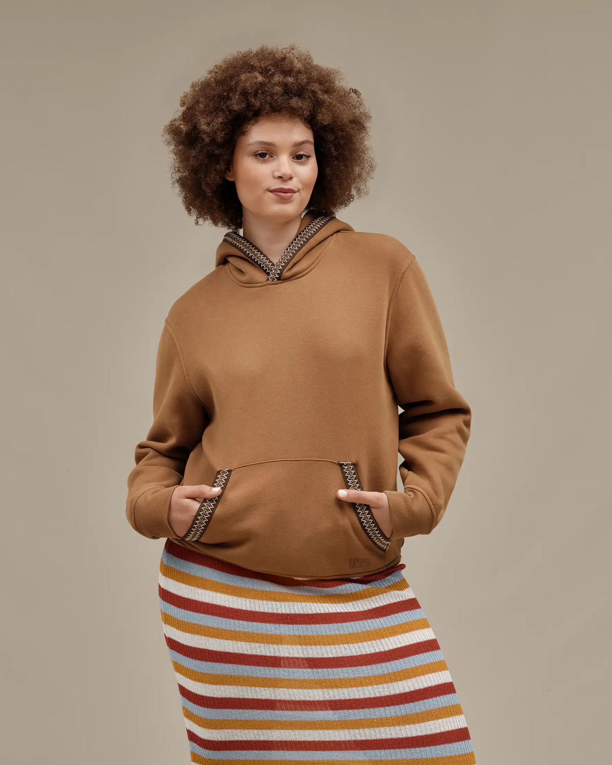 De NOMAD Tracksuit is een unisex set gemaakt van een zachte, behaaglijke katoenmix met 45% gerecyclede vezels, ontworpen voor ultiem comfort. De stof voelt warm en soepel aan, met een fijne textuur en een tijdloze, relaxte uitstraling. Subtiele contrastdetails geven de hoodie en broek net dat extra karakter.